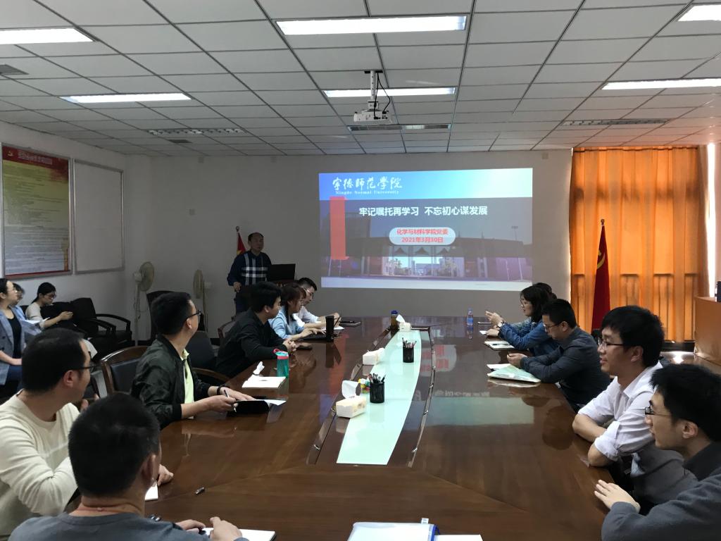 化学与材料学院党委书记游东宏结合习近平总书记来闽考察重要讲话精神为学院教职工上了一堂思政课,他说:“习近平总书记在闽江学院的讲话精神为应用型高校发展指明方向,我们要以强烈的政治责任感和历史使命感,守初心、担使命,脚踏实地加油干,开启有特色的应用型大学建设新征程,以优异成绩回报总书记的殷切期望。”
