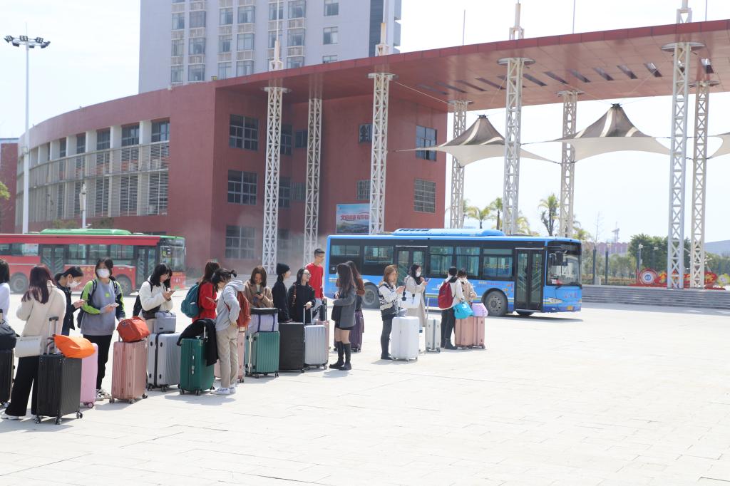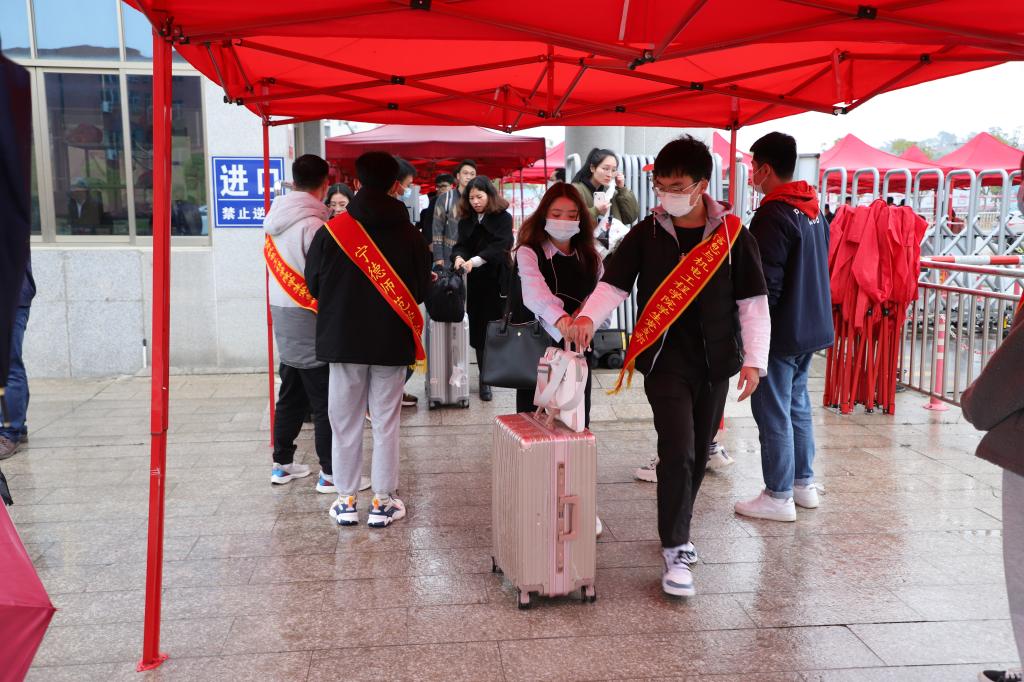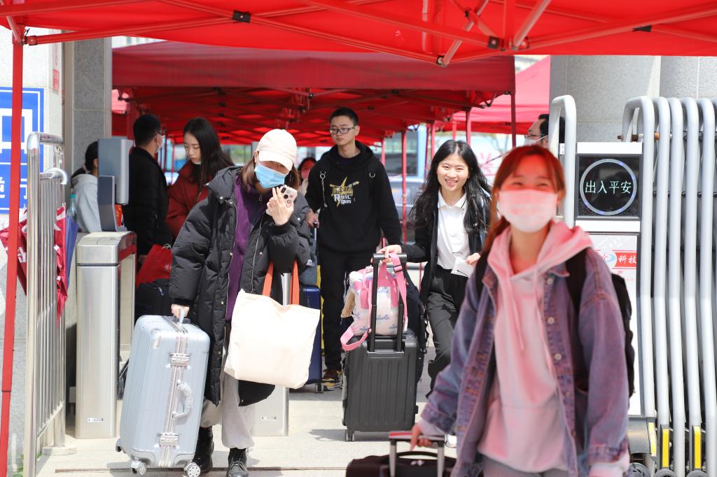 3月12日至15日,sunbet官网组织符合疫情防控条件的8476名非毕业班学生分批错峰返校。行李消毒、更换口罩、出示健康码、测量体温……校大门口设置了4个临时疫情检测通道和临时观察区,学生经出示健康码、测量体温、更换口罩、手部及行李物品消毒后方可进入校园。现场,校园爱心“摆渡车”从校门口至宿舍往返接送返校学生,学生返校井然有序,沉寂了一个寒假的校园迎来了学子们的平安归来。