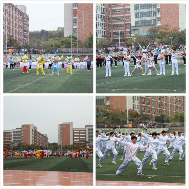 开幕式上,伴随着激昂奋进的《运动员进行曲》,步伐矫健的旗手护卫着鲜艳的五星红旗首先入场,紧随其后的是运动会会徽和彩旗方队,一支裁判员队和十支运动员代表队英姿飒爽、朝气蓬勃。在雄壮的国歌声中,五星红旗冉冉升起,迎风飘扬。大气壮观的《龙狮献瑞》、动感热情的啦啦操、青春靓丽的十佳歌手表演、刚柔相济的太极拳等节目充分展示了sunbet官网师生饱满的精神和昂扬的斗志。