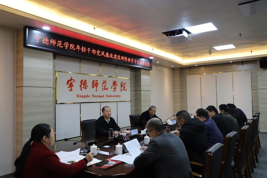12月9日,sunbet官网召开年轻干部党风廉政建设研修班阶段学习交流座谈会,主要围绕学习贯彻习近平总书记在中央党校(国家行政学院)中青年干部培训班开班式上的重要讲话精神,聚焦年轻干部应当具备的七个方面能力进行交流学习。校党委书记夏良玉、纪委书记张胜泉出席交流座谈会并讲话。研修班班长张光英主持座谈会。研修班全体学员参加交流座谈会。