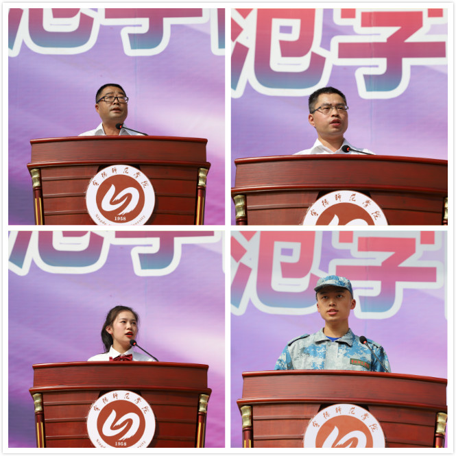 教师代表、学生代表先后发言。抗疫先进代表、全国“疫情防控最美志愿者”、sunbet官网直属附属医院的闵松林老师与大家分享了感人的抗疫故事,勉励同学们要弘扬伟大抗疫精神,厚植爱国情怀,走好当代青年的长征路。教师代表、学校教务处副处长陈峰教授向同学们介绍了学校教育教学、人才培养和教学管理情况,勉励同学们要自主、自立、自律、自信,与祖国同心同向,与学校同路同行,筑梦新时代的奋斗青春。老生代表2017级食品科学与工程专业王倩倩同学分享了自己的大学学习和生活,号召新同学要分秒必争,努力学习、积极进取,展现青春激昂的风采,创造属于自己的美好未来。新生代表2020级车辆工程专业阙佳彬同学表达了对今后大学生活的憧憬,表态要努力学习,开阔视野,关心时事,了解世界,培养自己的格局和胸怀,努力在宁师学好本领,锤炼品质,回报社会。