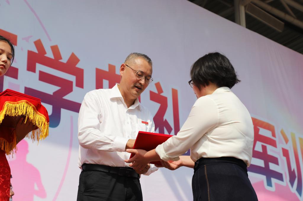 现场,还举行了新生佩戴校徽仪式。校领导为新生代表佩戴校徽。一枚小小的徽章,一段庄重的承诺,承载着宁师人的使命与荣光。