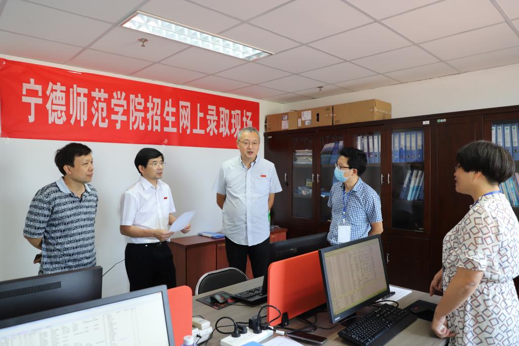 在录取现场,夏良玉和魏远竹认真听取了招生办关于sunbet官网今年招生录取工作情况的汇报,详细了解sunbet官网招生录取进程及各批次出档情况,重点询问了面向宁德招生招生以及医学类专业招生情况。夏良玉和魏远竹对sunbet官网今年招生工作所取得的成绩给予了充分肯定,对招生工作人员的辛勤付出表示感谢。