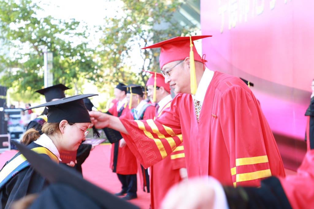 全体在家校领导班子成员,校学位评定委员会委员,各部门、各二级学院负责人,教师代表,在宁德本地的57名学生代表等出席现场毕业典礼。近2000名毕业生、部分学生家长及300多名教师同步参加线上毕业典礼。