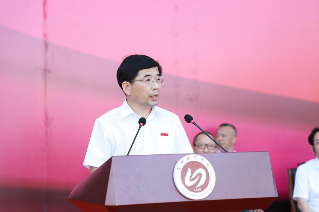 数理学院院长林秀清教授作为优秀教师代表发言,勉励同学们要心怀梦想和感恩,时刻保持学习力和独立思考的能力;要有家国情怀和使命担当,用实际行动践行“奋斗是青春最亮丽的底色”,为早日参加祖国建设、为地方发展贡献青春力量。