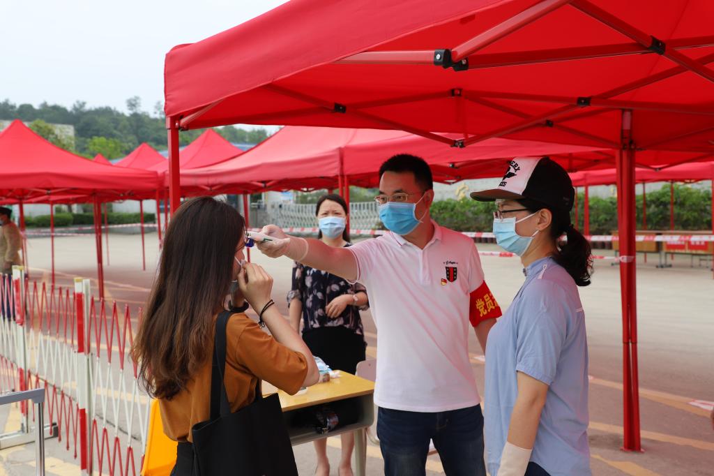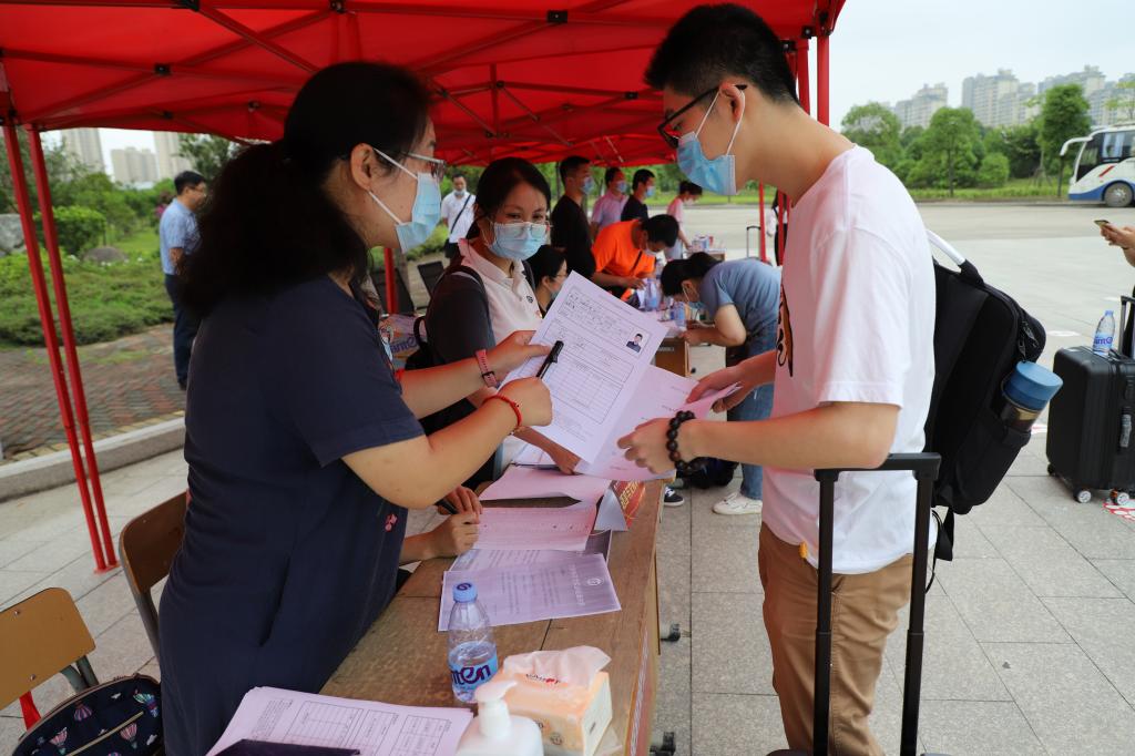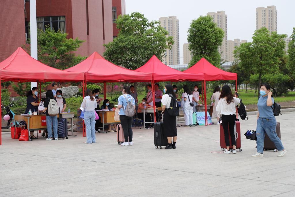 当日,各二级学院以及学工、保卫、后勤等部门教师职工走进学生返校工作一线,克服高温、大雨的天气影响,引导学生完成防疫流程环节有序报到。市疾控中心、市人民医院派出工作人员全面指导、有力保障做好应急处置,市公安局交警支队、大门山派出所调动警力协助做好校门口安全护卫,学校所在亿利社区负责人现场跟踪了解学生返校情况……学校与疾控、医院、公安、社区等协调联动,进一步织牢织密联防联控网。