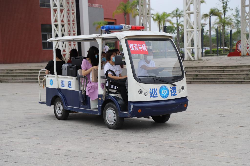 学校在动车站、汽车南站、汽车北站设置3个接送站点,安排教师党员志愿者服务队及专车,点对点接送同学们返校。学校大门口开设4个临时疫情检测通道,设置临时观察区,学生经出示健康码、测量体温、更换口罩、手部及随身携带物品消毒后进入校园。各二级学院报到点对学生身份进行再次核验。校园内安排爱心“摆渡车”从校门口至宿舍往返接送学生,学生返校流程秩序井然。