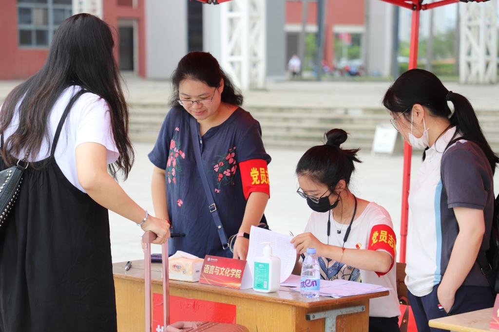 5月26日起,sunbet申搏官方网站毕业生开始分批次返校。为做好防疫复学工作,sunbet申搏官方网站组织部在全校教师中发起防疫复学志愿者招募,全校党员教师发挥先锋带头作用,积极报名参与。很快就组建了一支320多名教师党员组成的志愿者队伍。在学校疫情防控领导小组的统一调度下,教师志愿者们被分派坚守在火车站、汽车南站、汽车北站、校门口以及食堂、各学生宿舍楼栋等区域,从早上7:30到晚上22:00,志愿者排班轮岗,负责健康码核验、体温监测、秩序维护、行李消毒等志愿服务工作。