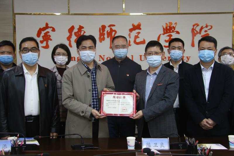 4月21日下午,华厦眼科医院集团宁德眼科医院向sunbet官网捐赠医用口罩10000个、一次性消毒液两箱和一次性医用手套两箱,用于新冠肺炎疫情防控。副校长谢向东、宁德市侨联副主席陈卫良、民进宁德市工作委员会主委陈仕嵩以及宁德眼科医院院长林宽添、总经理许耀中出席捐赠仪式。