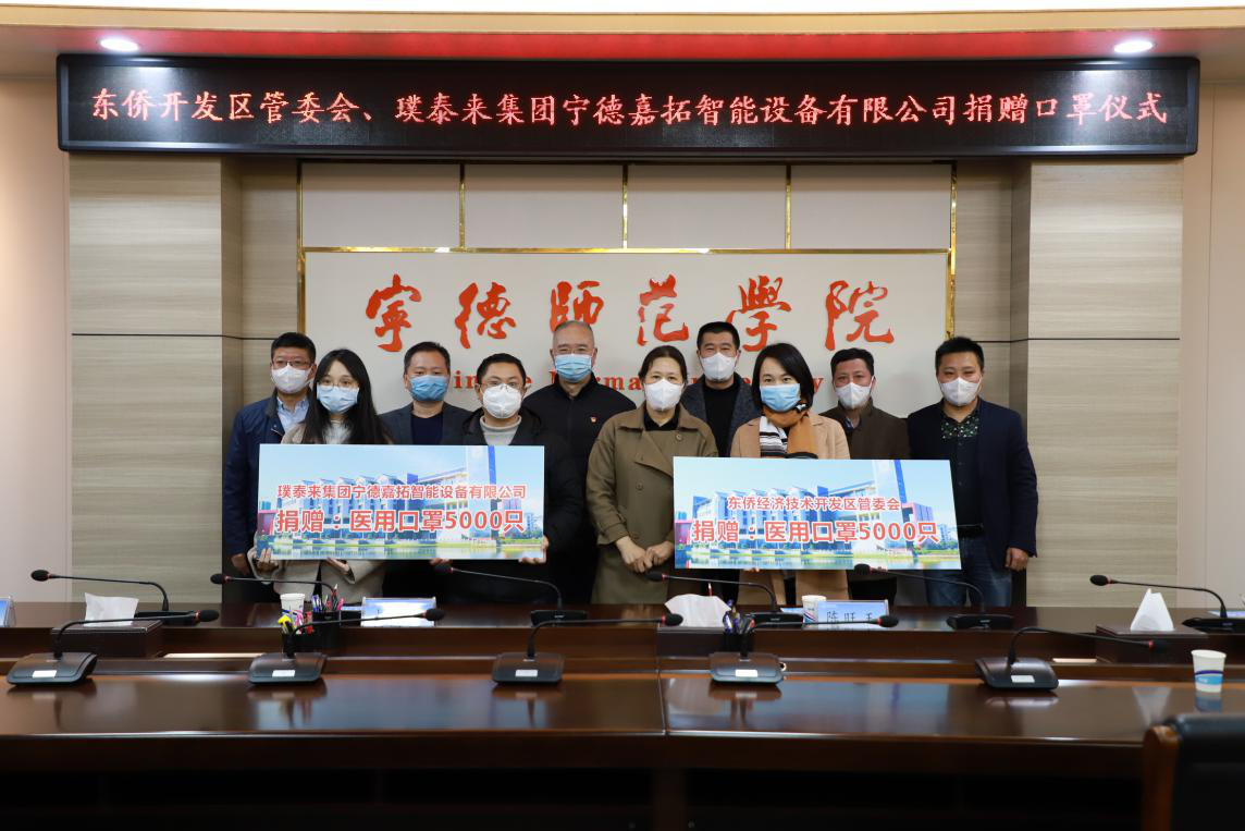 东侨开发区管委会、璞泰来集团宁德嘉拓智能设备有限公司为sunbet申搏官方网站捐赠防疫物资
