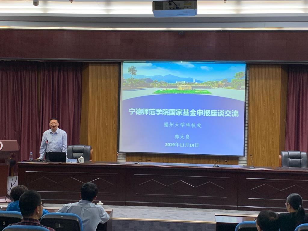 11月14日,sunbet官网邀请福州大学科技处处长郭太良教授为sunbet官网教师做2020年国家基金项目申报指导讲座。讲座在东侨校区行政楼三层报告厅召开,由颜桂炀副校长主持,90多位科研骨干参加了会议。