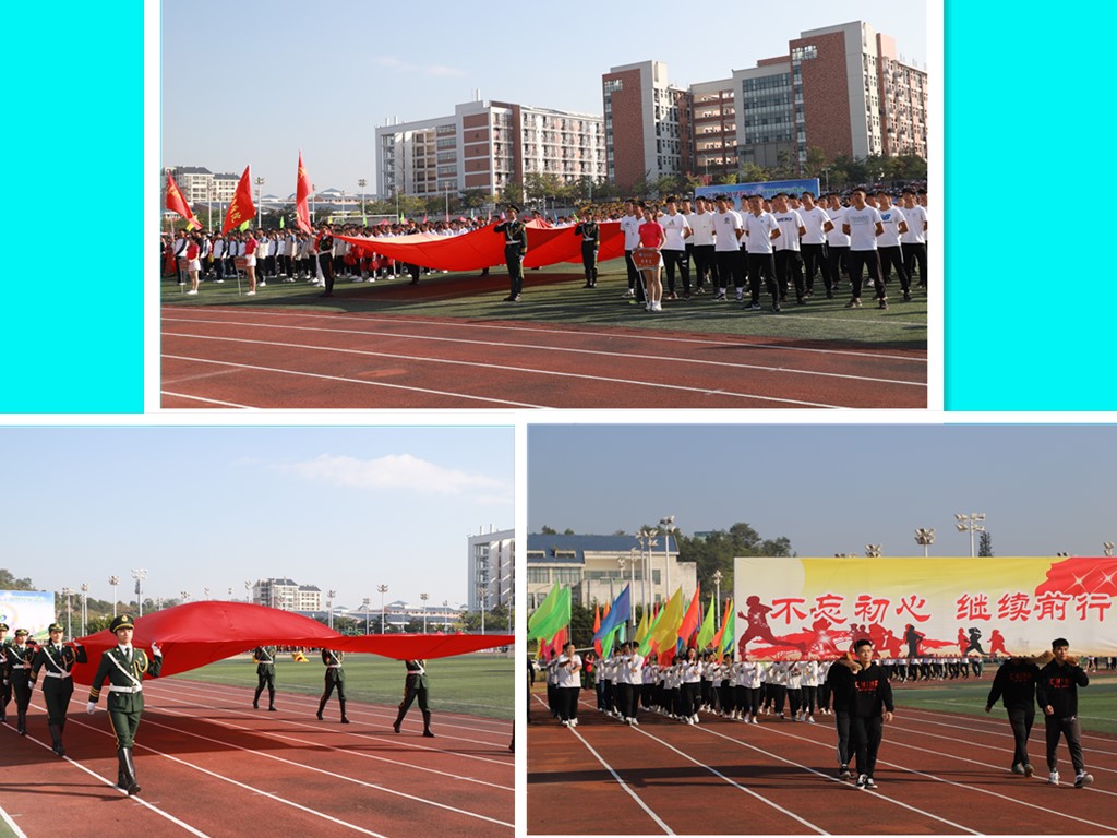 11月6日,sunbet官网第十届田径运动会在东侨校区田径场举行。校党委书记夏良玉、校长魏远竹、副书记徐晓丹、副校长谢向东、副校长颜桂炀、纪委书记张胜泉、副校长陈旺玉出席开幕式并观看学生文艺表演。谢向东致开幕辞并宣布运动会开幕,运动员代表和裁判长分别宣誓。颜桂炀主持开幕式。全校各二级学院、各部门负责人参加开幕式。