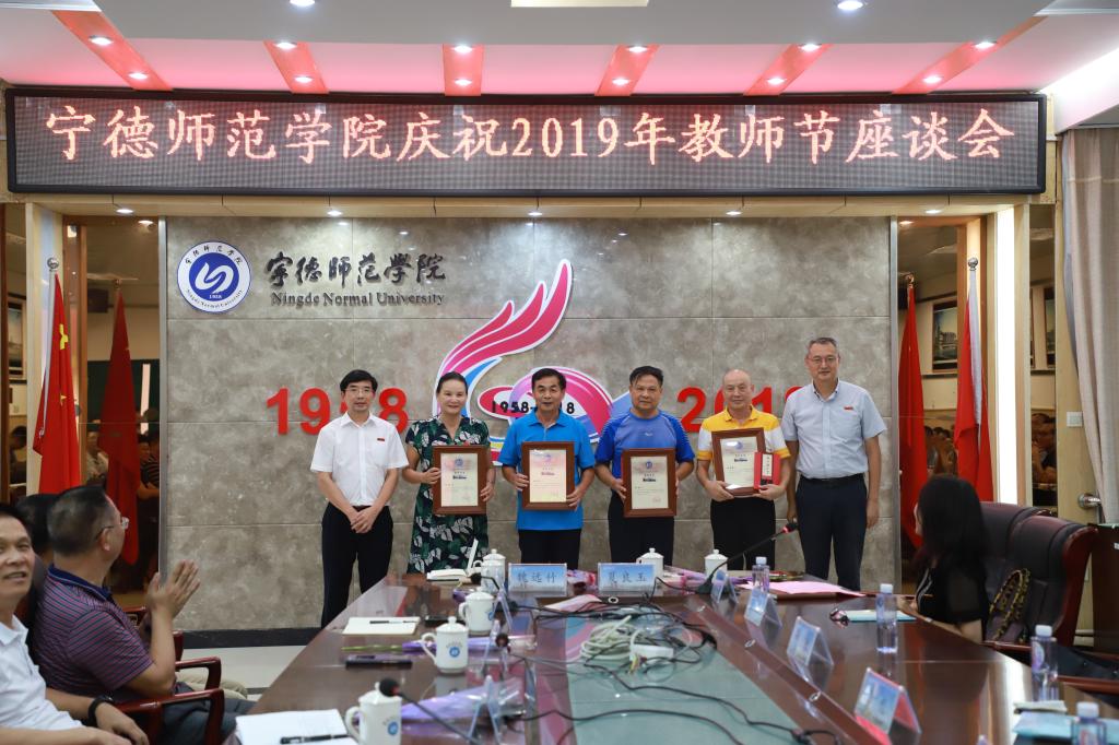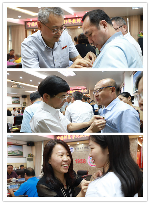 9月10日,sunbet官网举行庆祝2019年教师节座谈会。校党委书记夏良玉、校长魏远竹、副书记徐晓丹、副校长谢向东出席会议,为最美教师、从教荣誉证书获得者、光荣退休教师颁发证书,为新入职教师佩戴校徽,感谢他们为学校建设和发展做出的卓越贡献,勉励新入职教师要努力奋斗,按照“四有”好老师标准,切实肩负起立德树人、教书育人的职责,做好学生的引路人;希望荣休教师持续发挥余热,继续关心关注学校事业发展。徐晓丹主持座谈会。
