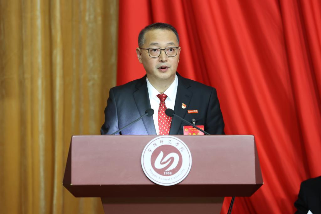 大会号召,全校上下要紧密团结在以习近平同志为核心的党中央周围,高举习近平新时代中国特色社会主义思想伟大旗帜,不断砥砺奋进、攻坚克难,发扬钉钉子的精神,一任接着一任干,为奋力谱写全面建设社会主义现代化国家的宁师篇章作出新的更大贡献!