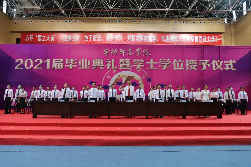 全体校领导、校学位评定委员会委员,各部门、各二级学院党政负责人,教师代表和2021届全体毕业生、2020届毕业生代表出席毕业典礼暨学位授予仪式。