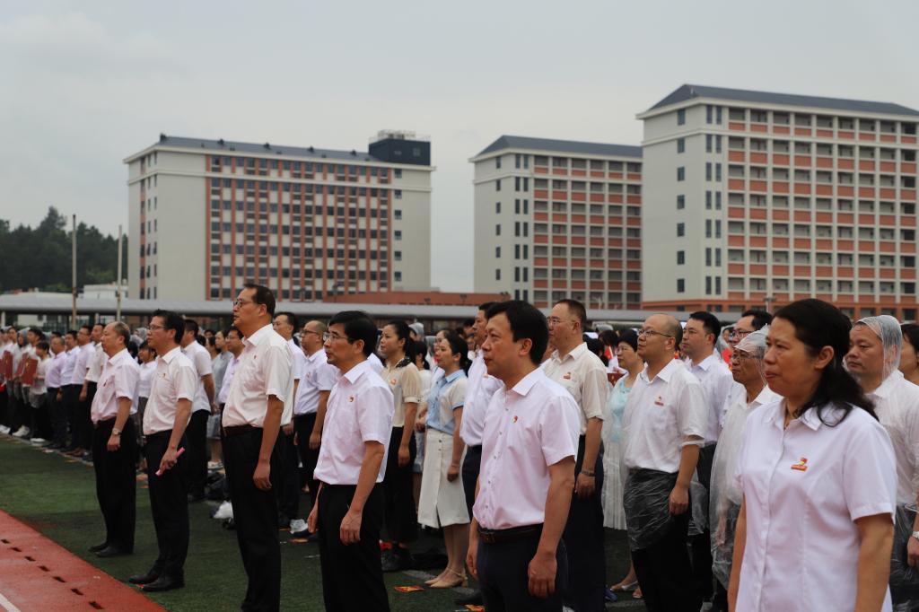 为铭记党的奋斗历程,感悟党的初心使命,庆祝党的百年华诞,7月1日,sunbet官网隆重举行升国旗仪式,全体校领导、全校师生齐聚田径体育场,高唱国歌、高扬红旗,缅怀历史、展望未来,致敬伟大中国共产党。党委副书记江潮炳主持升国旗仪式。