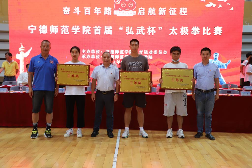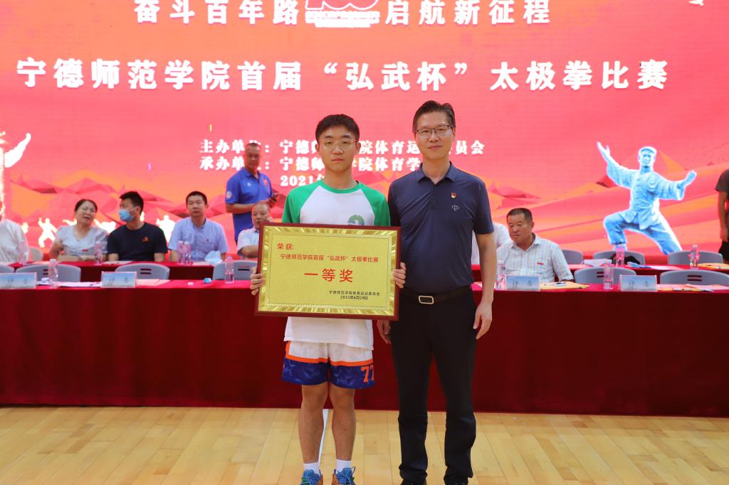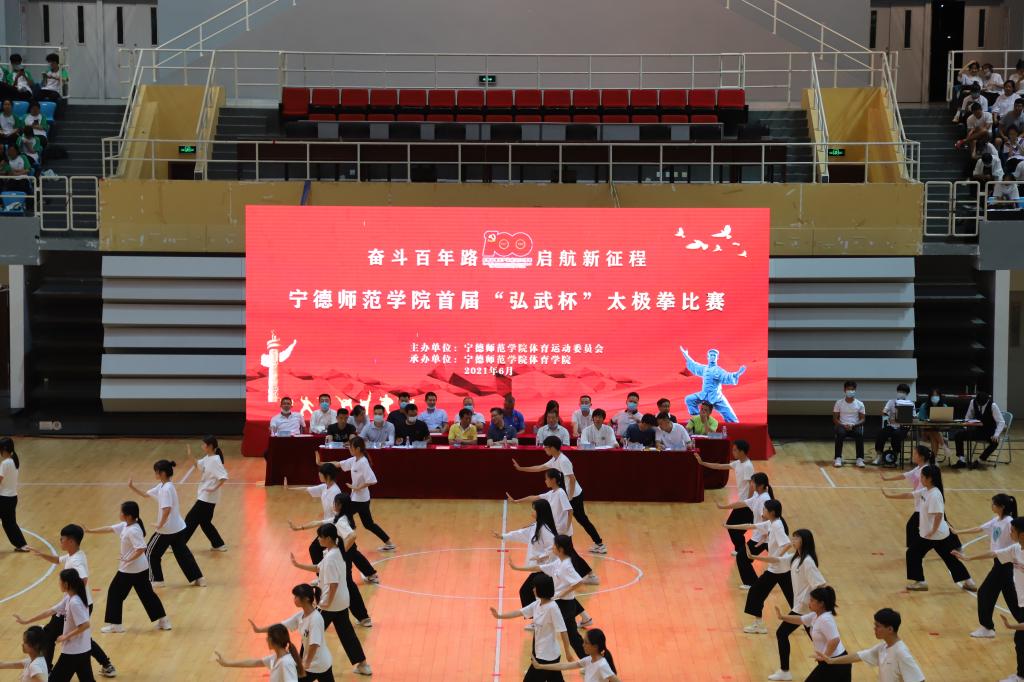 6月30日晚,sunbet官网在体育馆举行“奋斗百年路·启航新征程”首届“弘武杯”太极拳比赛。本次比赛既是庆祝建党100周年的一次文体活动,也是党史学习教育的生动实践。党委副书记江潮炳,体育学院党委书记、院长和各二级学院党委副书记观看比赛。