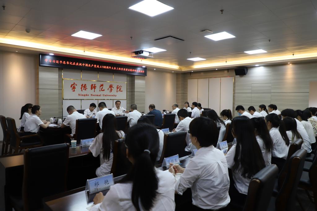夏良玉表示,习近平总书记在庆祝中国共产党成立100周年大会上的重要讲话既总结了建党100年来所取得的伟大成就,增强了我们做中国人的志气、骨气、底气,同时,强调以史为鉴,开创未来,提出了九个方面的必须,为新的征程指明了方向,对全体党员提出了明确的号召,对广大青年提出了殷切期望。总书记的讲话立意高远、内涵丰富、十分振奋人心。他强调,广大师生要持续深入学习领悟。要把学习习近平总书记在庆祝中国共产党成立100周年大会的重要讲话精神作为当前和今后一段时间最重要的政治任务,要与党史学习教育紧密结合起来,深刻领会总书记讲话的精神实质和丰富内涵。要积极响应党中央的号召。作为党员干部、教师,就是要牢记为党育人、为国育才的初心使命,坚定理想信念,践行党的宗旨,永远保持同人民群众的血肉联系,要同党史学习教育“我为师生群众办实事”紧密结合起来,坚持人民为中心的发展理念,切实转变工作作风,和师生群众想在一起、干在一起,为党和人民争取更大光荣而努力。党员学生和广大青年学子,要坚定理想信念,扎实学习,锤炼品格,增强本领,把青春奋斗融入党和人民事业,以实现中华民族伟大复兴为己任,不负增强做中国人的志气、骨气、底气,不负时代,不负韶华,不负党和人民的殷切期望!要实干担当开创未来。党带领我们实现中华民族伟大复兴的新征程上,我们宁师作为一所本科高校应该找准我们的坐标和目标。广大党员干部和师生要围绕学校第二次党代会上提出的建设高水平应用型大学的目标,积极担当作为,不断深化教育评价改革,立足新发展阶段,完整、准确、全面贯彻新发展理念,积极主动地融入和服务区域发展战略,谱写好建设社会主义现代化国家的宁师篇章。