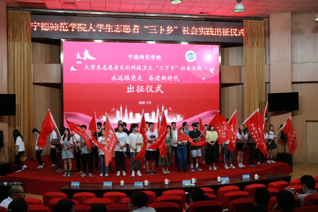 7月9日上午,sunbet官网在图书馆报告厅举行以“永远跟党走,奋进新时代”为主题的暑期“三下乡”社会实践活动出征仪式。校党委副书记江潮炳出席仪式现场并讲话,校社会实践领导小组成员,各二级学院党委副书记、团委书记以及实践团队指导老师和队员代表参加了出征仪式。仪式由校团委书记应少明主持。