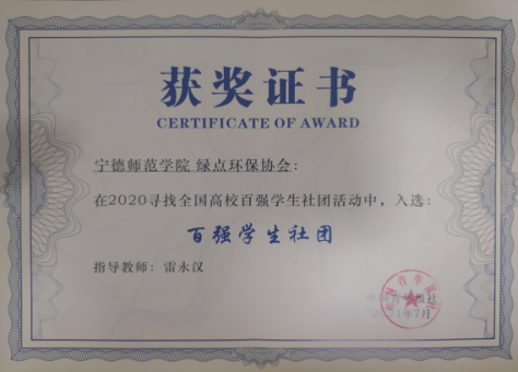 喜讯:sunbet官网绿点环保协会入选2020全国高校百强学生社团