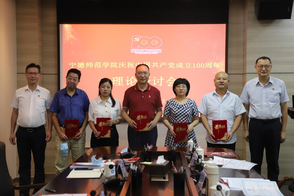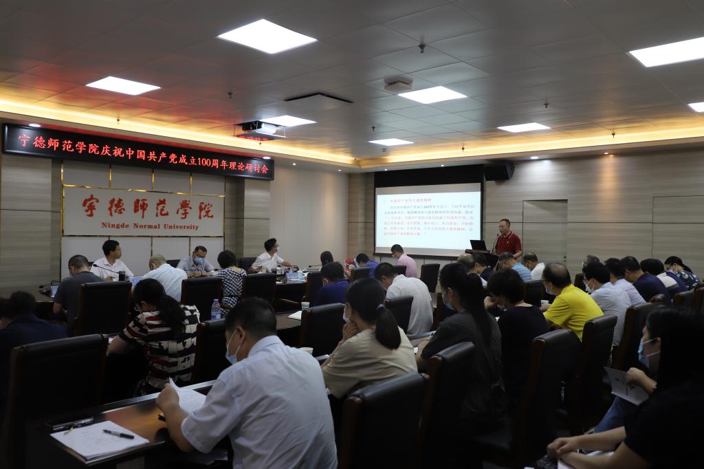 本次研讨会是学校庆祝中国共产党成立100周年的一项重要活动。此前,学校开展了庆祝中国共产党成立100周年理论研讨会论文征集活动,并对征集的论文进行评审,择优汇编成册。会上,来自机关党委的赵公弼,马克思主义学院的杨玉玲、黄玉桃、周维功、刘雄,语言与文化学院的林猤,以及体育学院的李进华等7位老师分别从伟大精神、党的领导、群众路线、毛泽东思想、习近平新时代中国特色社会主义思想、闽东乡村振兴等不同的维度做了充分交流。