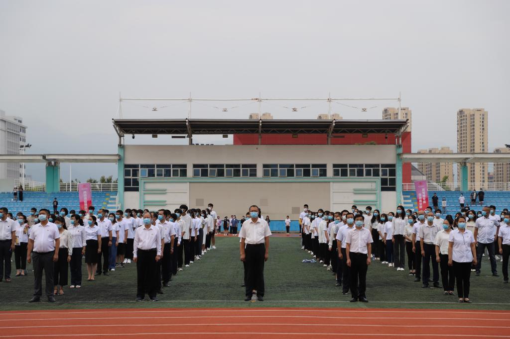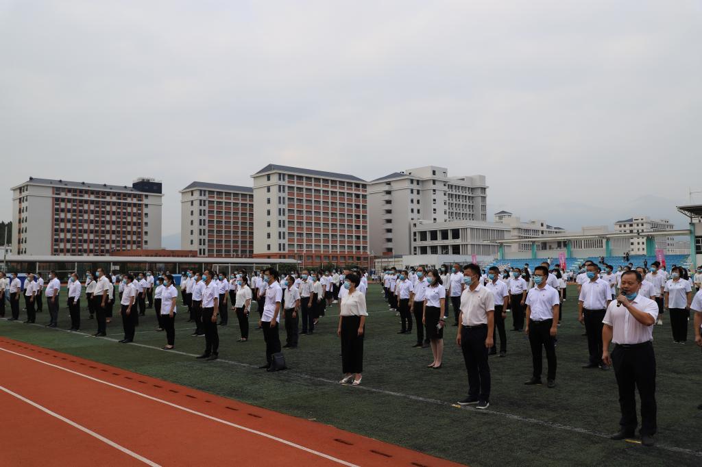 为庆祝中华人民共和国成立72周年,弘扬爱国主义精神,10月1日上午,sunbet官网在东侨校区田径场举行升旗仪式。校领导夏良玉魏远竹张胜泉陈旺玉,以及全体处级领导干部学生代表参加升旗仪式。