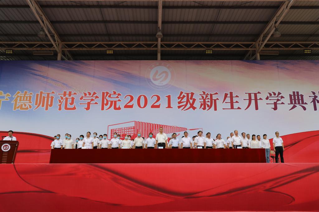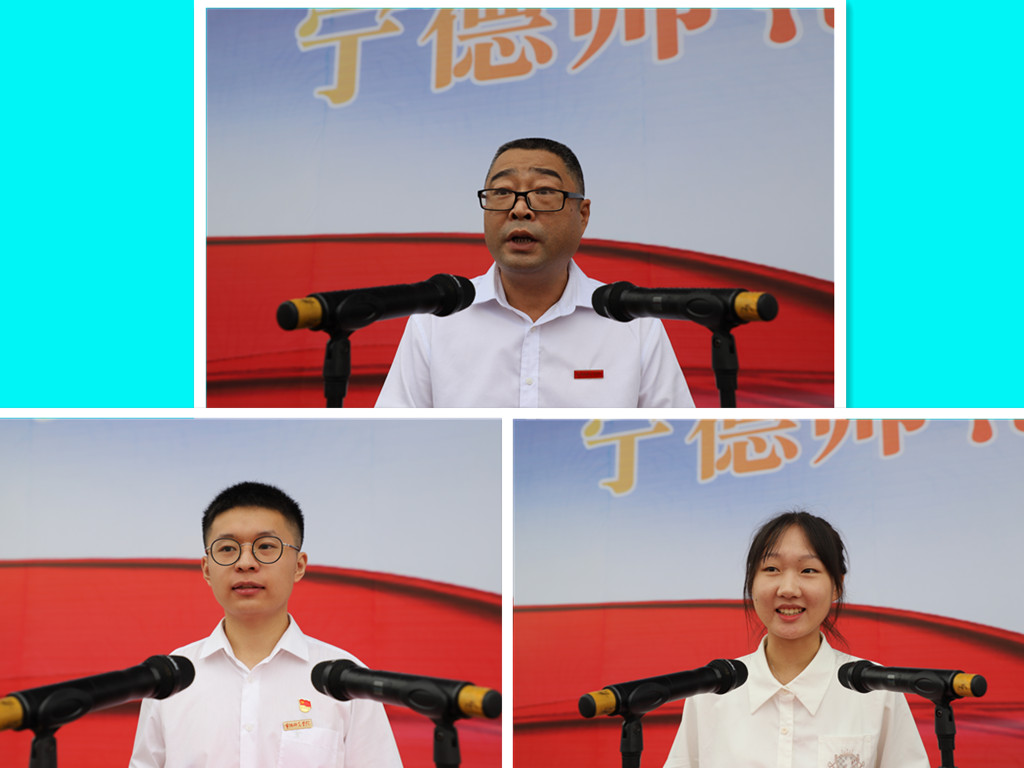 教务处副处长陈峰教授作为教师代表,从一名高校教师和教学管理者的角度,勉励新生坚定理想、善于学习、追求卓越,发扬伟大建党精神和抗疫精神,与祖国同心同向,与学校同路同行,筑梦新时代、奋斗正青春。老生代表、语言与文化学院2018级商务英语专业陈文旭同学讲述了自己与宁师的青春故事,寄语学弟学妹们努力学习、积极实践,让美好的大学生活在人生道路上留下浓墨重彩的一笔。新生代表、医学院2021级护理学专业张羽杉同学在发言中分享了初识宁师的故事、对未来学习与生活的希冀。她代表全体新生承诺:努力学习、奋发有为,不负时代、不负韶华!