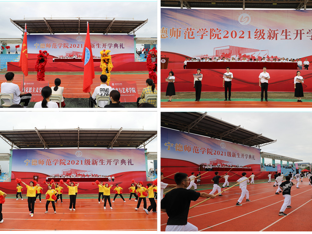 开学典礼还融入了舞龙舞狮《龙狮献瑞》、诗朗诵《与宁师同行》、啦啦操、武术表演、歌伴舞等暖场节目。辅导员们深情朗诵《与宁师同行》,向广大青年学子送上诚挚祝福和美好期望。大学生合唱团用高亢嘹亮的歌声唱响《我和我的祖国》,以青春强音礼赞祖国。