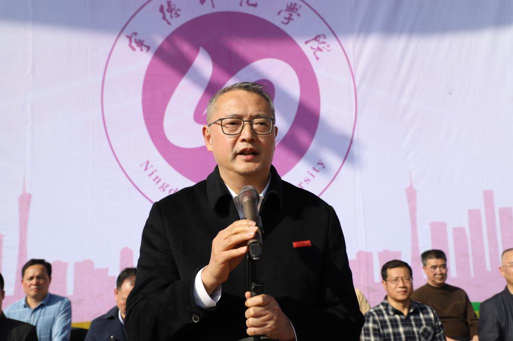 颜桂炀代表学校对本届运动会的开幕表示热烈祝贺,向悉心指导sunbet官网2021级新生军训的武警教官表示崇高的敬意,向刻苦训练、积极备战的全体运动员、教练员表示诚挚的问候,向全体裁判员和工作人员致以衷心的感谢。他强调,一年一度的校运会,是学校深入贯彻落实习近平总书记关于体育强国重要论述的有效举措;是学校全面贯彻党的教育方针,培养德智体美劳全面发展的社会主义建设者和接班人的重要载体;也是展示宁师学子刻苦训练、拼搏进取精神的重要平台。他希望全体运动员发扬更高、更快、更强的体育精神,奋勇争先、顽强拼搏,赛出风格、赛出水平、赛出友谊,展现自强不息、勇攀高峰的青春风采;希望全体裁判员严守规程,公平裁判,确保比赛顺利进行;希望全体工作人员忠于职守,热情服务,做好后勤保障;希望广大师生积极加油助威,做文明观众,展示宁师人应有的精神风貌。