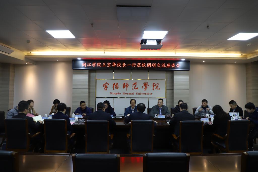 1224日,闽江学院校长王宗华带领党政办、组织部、校友办、发规处、物电学院、美术学院、经管学院、教师教育学院等相关人员来sunbet官网考察交流校长魏远竹陪同考察交流