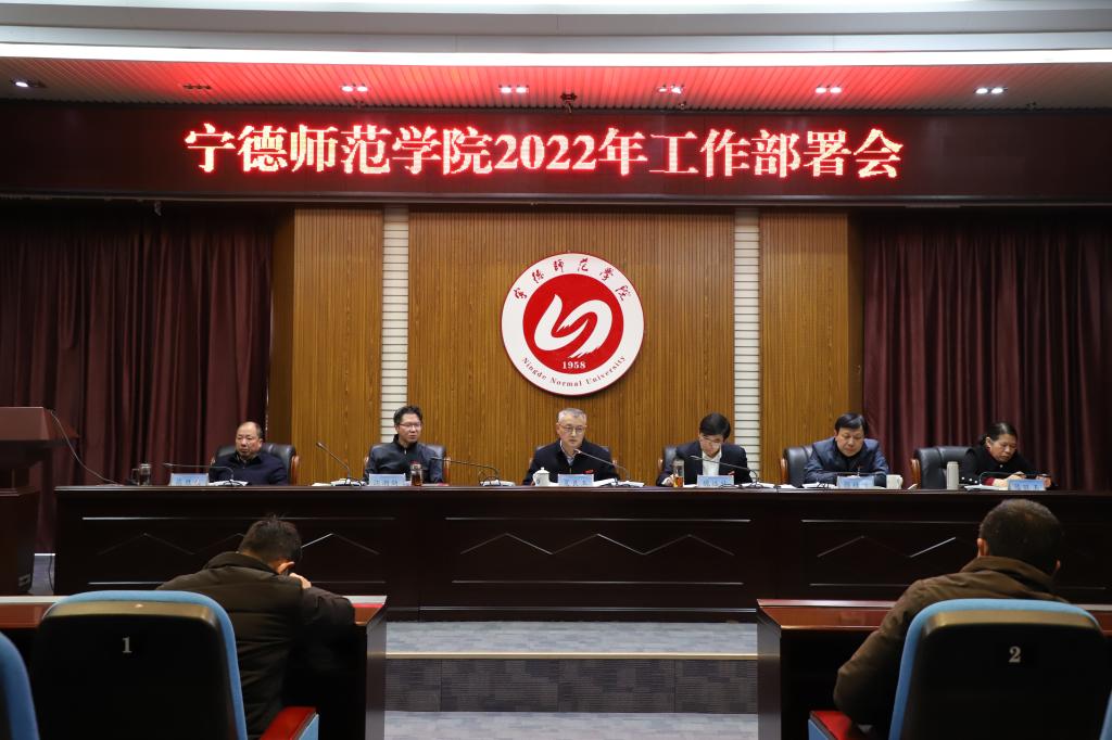 会议强调,2022年学校将聚焦“提质增效”发展主基调,重点实施“师范教育亮色工程”攻坚行动、“应用型人才质量提升工程”攻坚行动、“硕士学位授权单位培育建设”攻坚行动等三大内涵建设攻坚行动。推进党对教育工作的全面领导,深学细照笃行习近平新时代中国特色社会主义思想,构建高质量党建工作体系,锻造高素质专业化干部队伍,严格落实意识形态工作责任制,把牢政治引领“方向盘”;深化教育评价改革、深化教育教学改革、完善内部质量体系建设,激发创新发展“源动力”;全面从严治党,压实管党治校政治责任,抓好重点领域廉政风险防控,提高监督质量效能,一体推进不敢腐、不能腐、不想腐,加强作风建设,打好自我革命“组合拳”等重点任务。抓好6个师范类专业二级认证、审核评估准备、本科学士学位授权评估、临床医学本科专业申报等几项重点工程,落实好校园安全稳定、常态化疫情防控、保密、审计、后勤管理等常规工作。