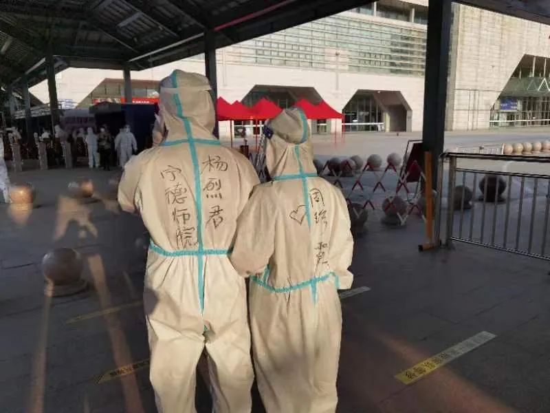 当经过简单的培训,他们夫妻俩很快上岗。四月初的宁德气温骤升,防护服带来的闷热感就如同在桑拿房里一般,周珍霓老师在志愿服务期间,深刻感受到了医护工作者的艰辛,穿着防护服9个小时,期间不喝水,不上洗手间,这9个小时,不仅是对体力的考验,更是对意志力的考验。