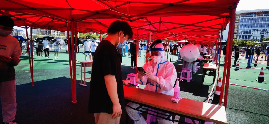 “各位同学,大家按十队排好,前后左右一米间隔,在这里候场。”在核酸检测候场区,维持秩序的林陈华同志,已经无数次的喊出类似的话语,保证同学们有序的进场。“能让同学们规范采检,守护他们的安全健康,我们的付出是值得的。”林陈华同志用已经有些嘶哑的声音说到。