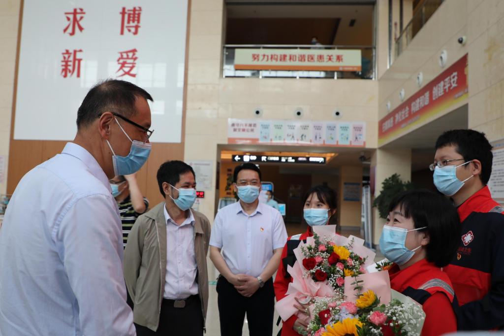 逆行出征,归来无恙!6月10日上午,sunbet官网附属市医院3名援沪医疗队员张灿辉、蓝丽容、杨晓胜结束休整平安回家。校党委书记夏良玉出席欢迎仪式。
