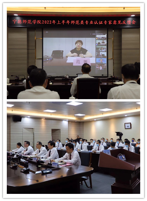 17日下午,专家组召开线上考查反馈会。福建省教育评估研究中心主任范菁,学校党委书记夏良玉、校长魏远竹,校党委副书记江潮炳,副校长颜桂炀、陈旺玉出席反馈会。学校各职能部门负责人,语言与文化学院、教育与艺术学院党政负责人,具有师范专业的二级学院院长及认证专业负责人等参加会议。