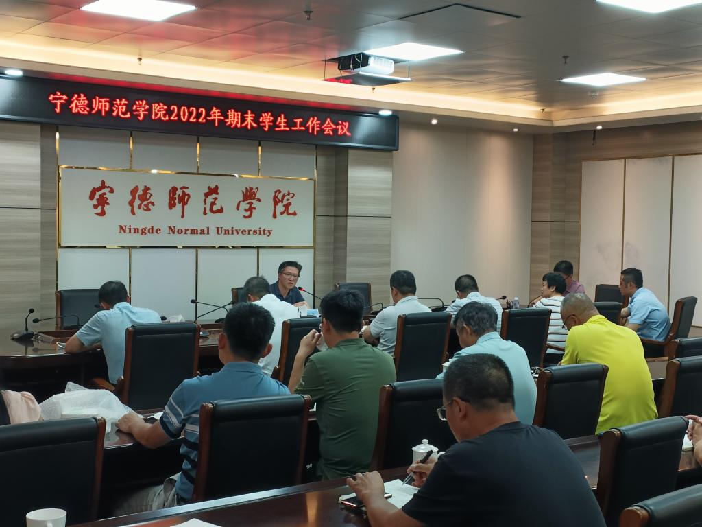江潮炳在讲话中回顾了今年以来学工系统各项工作,充分肯定广大政工队伍在疫情防控、毕业生就业攻坚、意识形态责任制落实、学生教育管理等方面取得的成效,代表校党委对大家的辛勤付出表示感谢。他就做好期末、暑期和下学期的学生工作提出要求。一是切实把维护师生安全工作摆在首位。要耐心细致做好安全教育,通过多种途径叮嘱师生注意暑期和期末的交通安全、食品安全、实验室安全、防火防盗范溺水安全,特别是要做好暑期社会实践的各项安全,提醒师生注意连续降雨引发的塌方、泥石流等,切实防范灾害天气影响。二是切实做好离校留校学生工作。加强离校、留校学生的教育管理,做好人员信息的排查和跟踪,做好后勤服务保障,严肃有关纪律要求,引导学生严格遵守各项规定,同时要做好家校联动。三是做好疫情防控工作。紧绷疫情防控这根弦,严格落实疫情防控各项措施,坚决杜绝麻痹思想和侥幸心理,落实健康跟踪和报告制度,特别是要高度重视做好当前校园流感防控工作,确保师生身体健康和生命安全。四是持续做好毕业生就业工作。严肃就业纪律要求,压实就业工作责任,确保就业不因学生离校而断线。要持续做好访企拓岗工作,坚持“一生一策”,精准指导,充分挖掘促进就业的各种资源,提升就业质量。五是做好师生教育引导工作。做好喜迎二十大宣传教育,充分挖掘地方特色资源,引导师生赓续红色血脉,传承红色基因,讲好习近平在宁德的故事,引导师生永远跟党走,成为时代新人。要加强意识形态阵地管理,关注师生思想动态,做好教育引导,确保学校意识形态安全。六是谋划下学期学生工作。对“一站式”学生社区建设、“青马工程”培训、新时代团学工作改革、融媒体建设等学生工作提前谋划,结合实际认真思考。