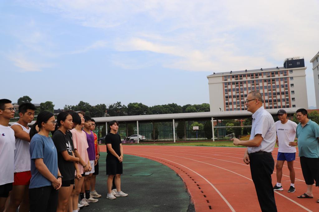 随后,夏良玉到体育馆和田径场检查指导省运会集训工作并看望慰问教练员、运动员,详细了解运动员的训练、身体、饮食、生活等状况,对运动员训练备战工作表示充分肯定,叮嘱教练员要强化安全训练意识,合理安排作息时间,做好、做细、做实各项训练工作,确保运动员训练安全和身心健康;要求相关部门继续用心做好后勤保障工作,着力为运动员训练创造良好的环境和条件;同时勉励运动员要树立信心、顽强拼搏,振奋精神、刻苦训练、努力备战,在省运会上赛出风格、赛出水平、为校争光。
