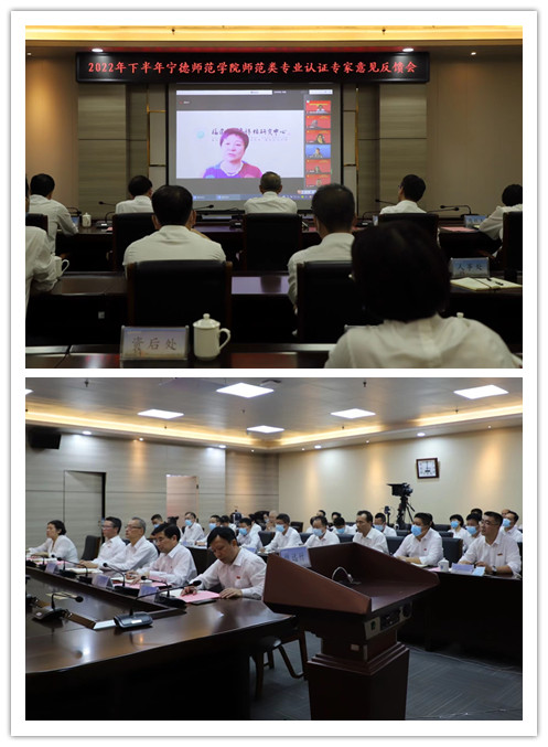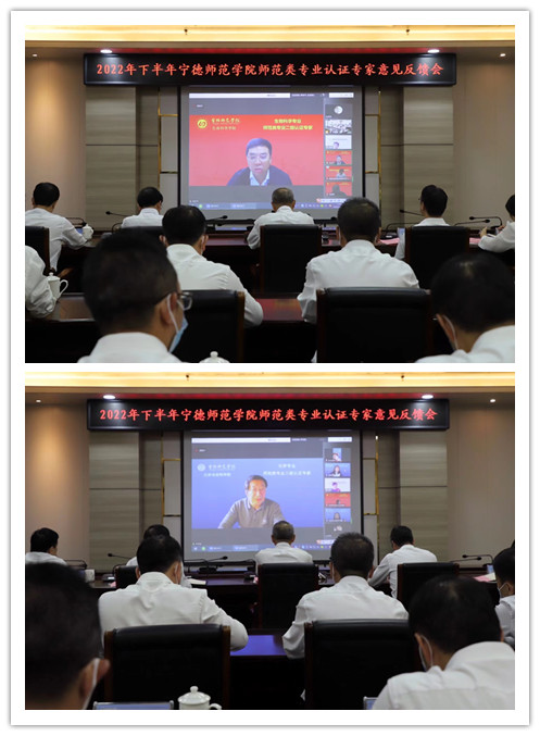 14日下午,专家组召开线上考查反馈会。福建省教育评估研究中心主任范菁,学校党委书记夏良玉、校长魏远竹,校党委副书记江潮炳,副校长颜桂炀、陈旺玉出席反馈会。学校各职能部门负责人,生命科学学院、化学与材料学院党政负责人,具有师范专业的二级学院院长及认证专业负责人等参加会议。