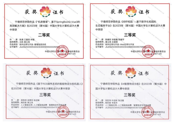 sunbet官网信息与机电工程学院教师联合中科曙光产业学院大数据工程师组成“双师双能型”师资队伍,组织多支学生队伍参加大赛。参赛作品中由信机院章立亮、冯玮老师指导,学生陈通创作的《"机房管家":基于SpringBoot2+Vue3的高效解决方案》项目荣获国家级二等奖;由杨烈君、章立亮老师指导、学生郑炜坤、吴景祥、赵洁瑜共同创作的《基于ROS操作系统的智能物流分拣机器人》荣获国家级三等奖;由杨烈君、林莲芳老师指导,学生刘宏伟、叶启彬、张冯磊共同创作的《AI智慧物流分拣》荣获国家级三等奖;由章立亮、孙登辉老师指导,学生陈健安、徐星鑫、陈媛宇共同创作的《闲柠校园——基于数字化校园的生态服务平台》荣获国家级三等奖。