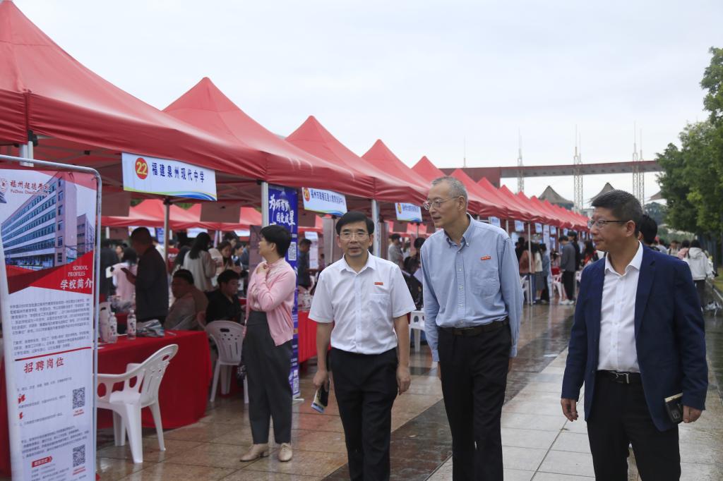 校党委书记夏良玉、校长魏远竹到会指导,详细了解参会企业行业分布、岗位需求、薪资待遇等情况,并与现场求职的2024届毕业生亲切交谈,了解毕业生求职进展情况和就业意向,鼓励毕业生要客观看待个人条件,树立科学合理就业观,积极做好职业规划,寻获心仪就业岗位。